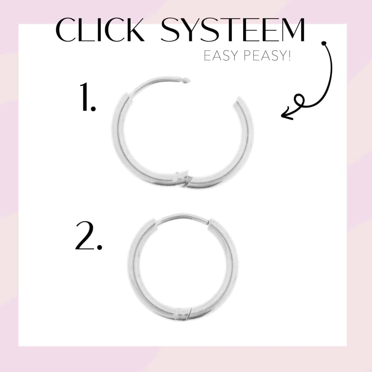De hoops van Label Kiki hebben een super handig klik-systeem. Heb je ook nooit de rust om je oorbellen fatsoenlijk in te krijgen? Dat is nu verleden tijd! Deze doe je in en uit binnen no-time!