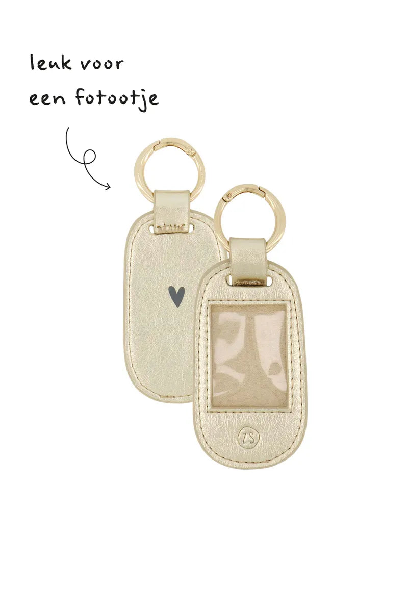 In deze leuke sleutelhanger kun jij je eigen foto doen! Onder de ruimte voor een foto staat het Zusss logo. Deze goudkleurige sleutelhanger is gemaakt van PU leer. Op de voorkant staat een gouden hartje. Dit item is 9x5cm.