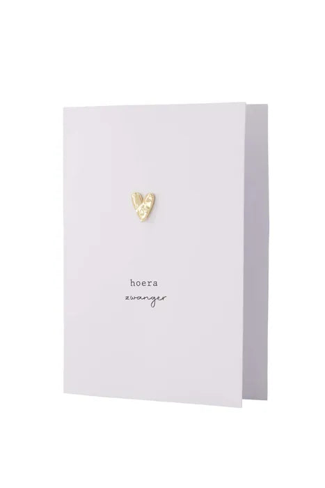 Wie verras jij met een lieve kaart? Deze kaart van Zusss is wit van kleur met daarop een houten broche in de vorm van een hartje en de tekst: hoera. Perfect om een van je vrienden of familieleden te feliciteren met een zwangerschap!